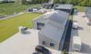Als Pultdach konzipiert, misst diese isolierte Halle 9,6 x 18,5 m. Die Halle ist erweiterungsfähig konzipiert und mit PV versehen.